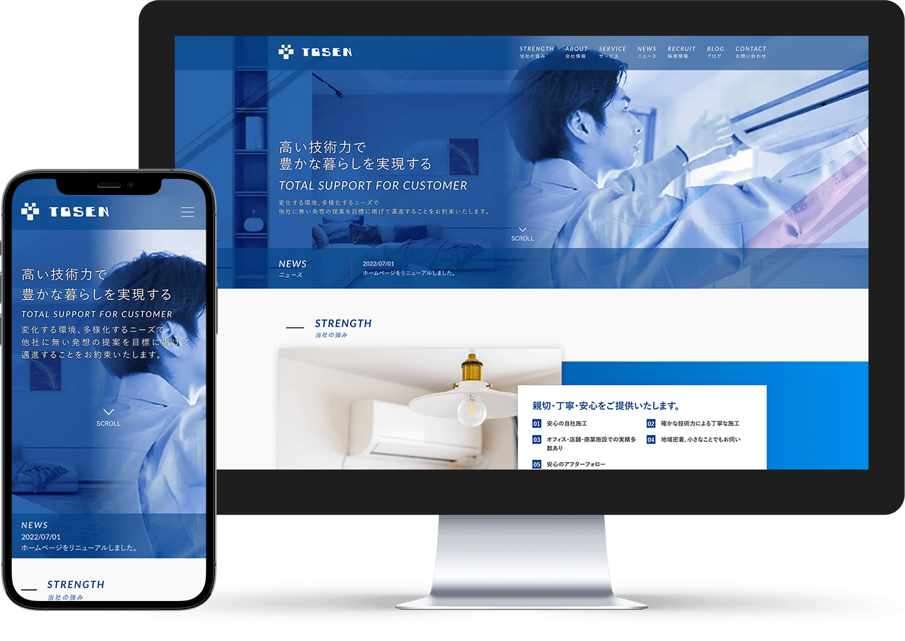 SEOを意識したコンテンツ設計、チラシや名刺などの印刷物デザインまで、幅広いニーズにワンストップで対応しています。